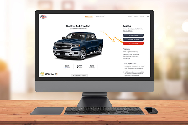 Add 100% customized widgets to high traffic areas on your website including your dealer’s home and text-to-trade pages. Trade Jazz leads go directly to your CRM. Highest quality data. Verified names, numbers, vehicles and intent all delivered.